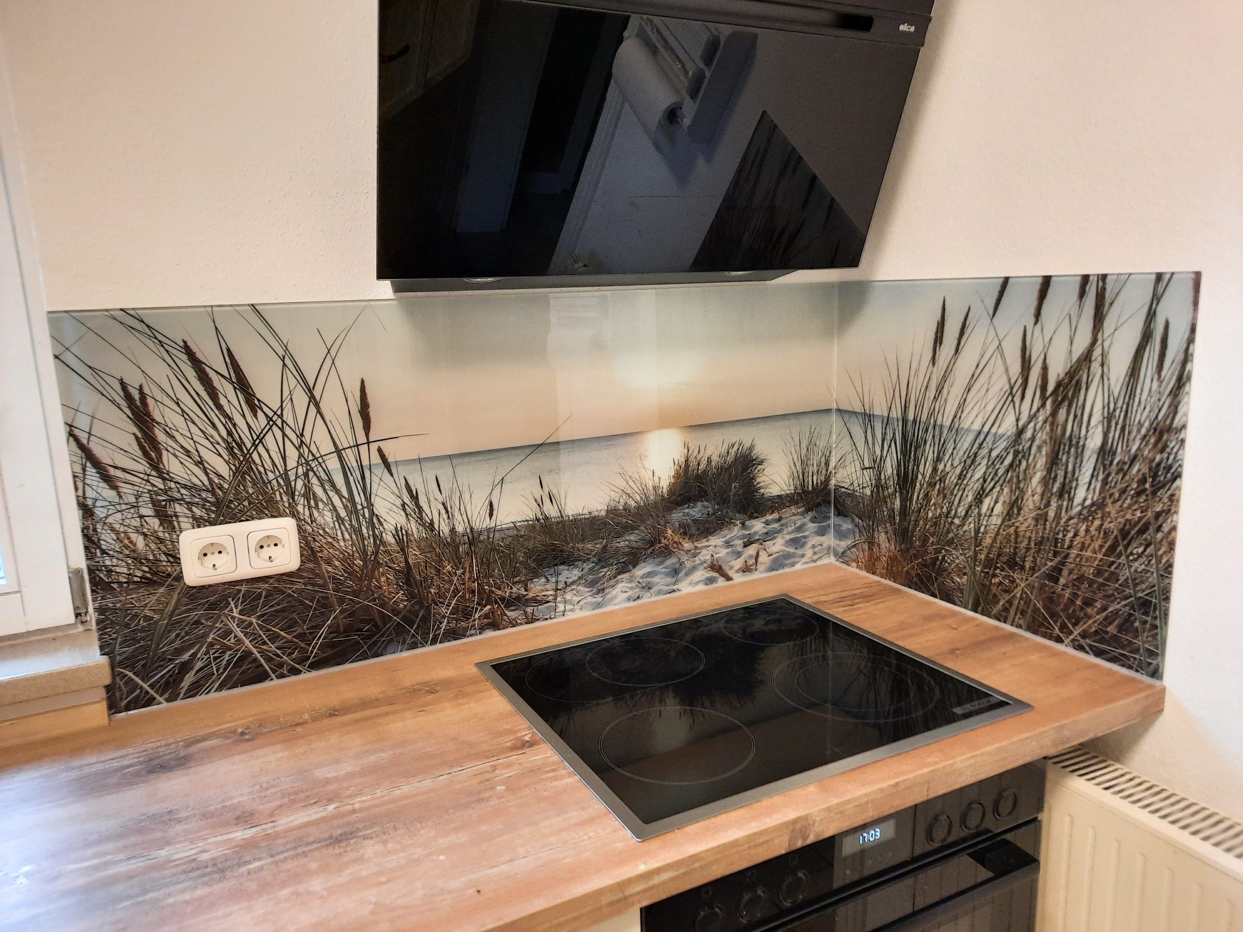 Küchenrückwände aus Einscheibensicherheitsglas individuell auf ihre Gegebenheiten anpassbar (z. B. Farbe, Motiv), ein moderner leicht zu reinigender Spritzschutz für ihre Küche